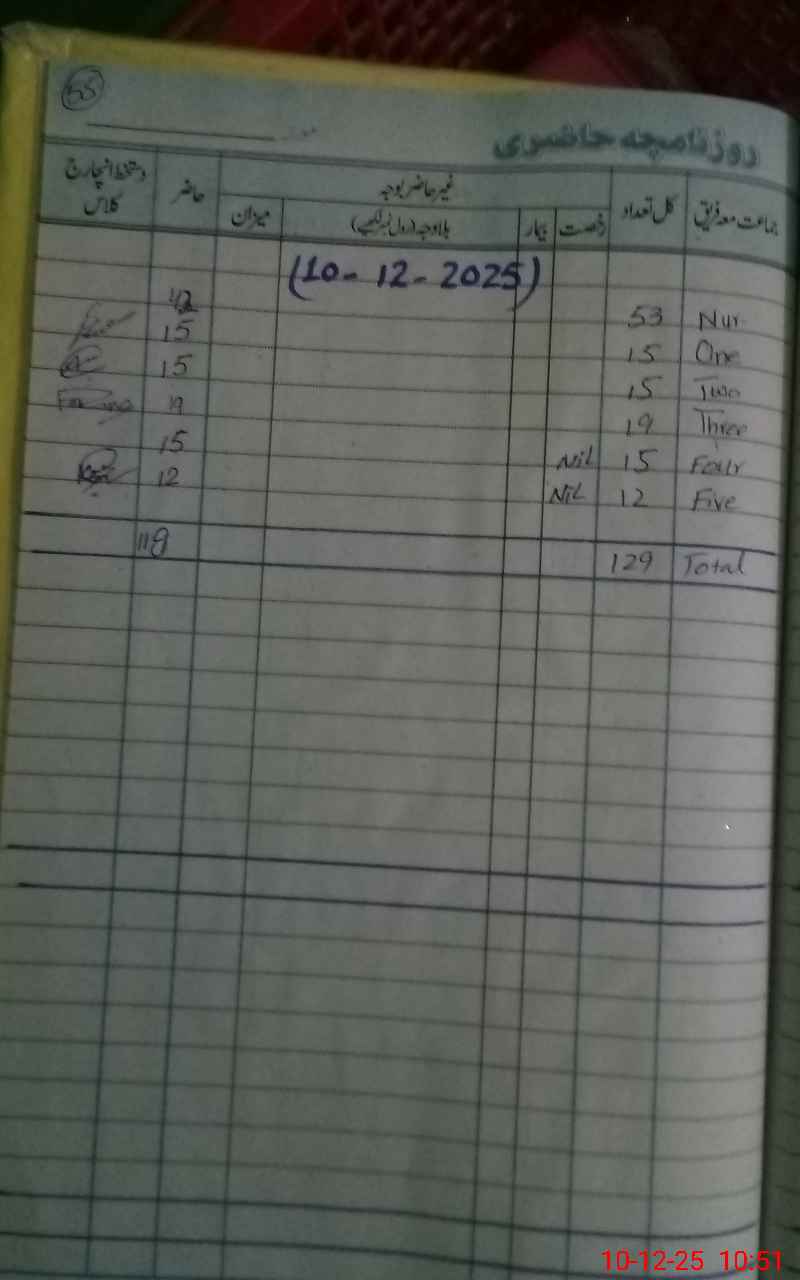 | District: PAKPATTAN | Tehsil: PAKPATTAN | Markaz: CHAKBEDI 3 - FEMALE | Level: Primary | |