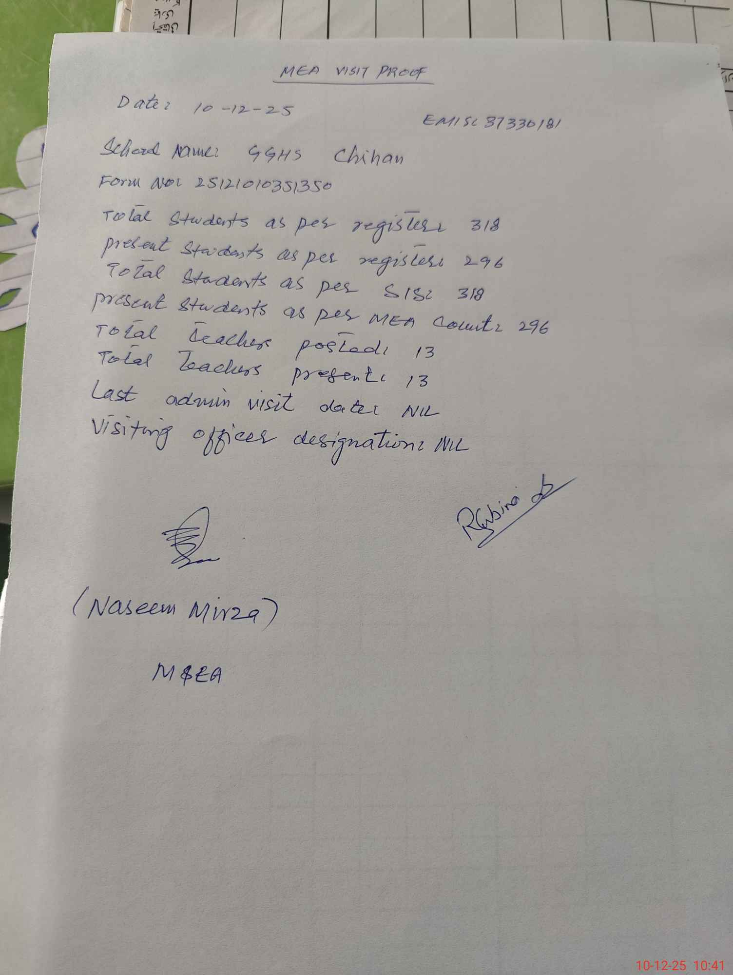 | EMIS Code: 37330181 | Name of School: GGHS CHIHAN | |||