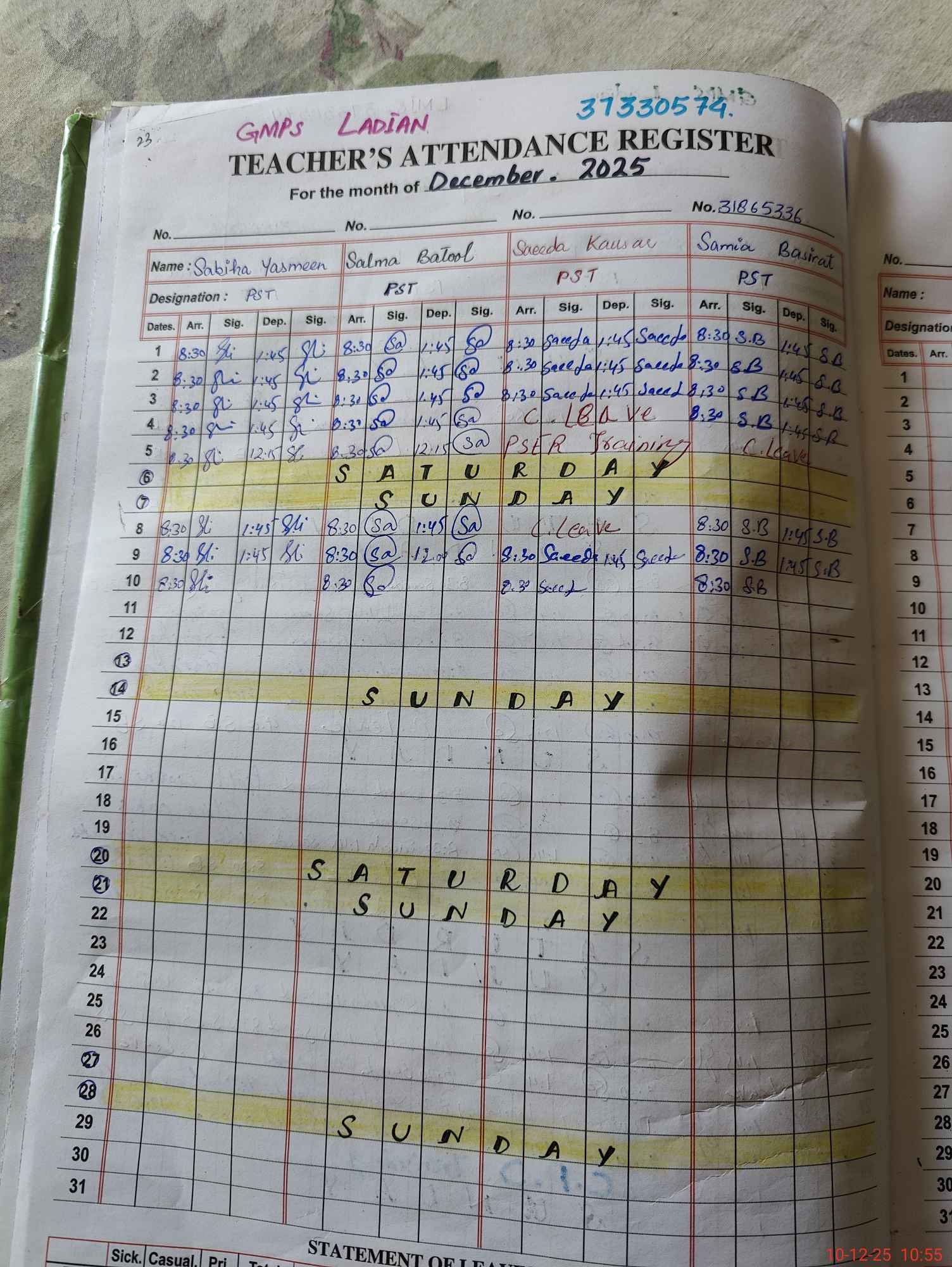 | Name: Sa**** Ba**** Designation: (School Headmaster's/Headmistress's) PST Phone/Cell Number: 03**** |