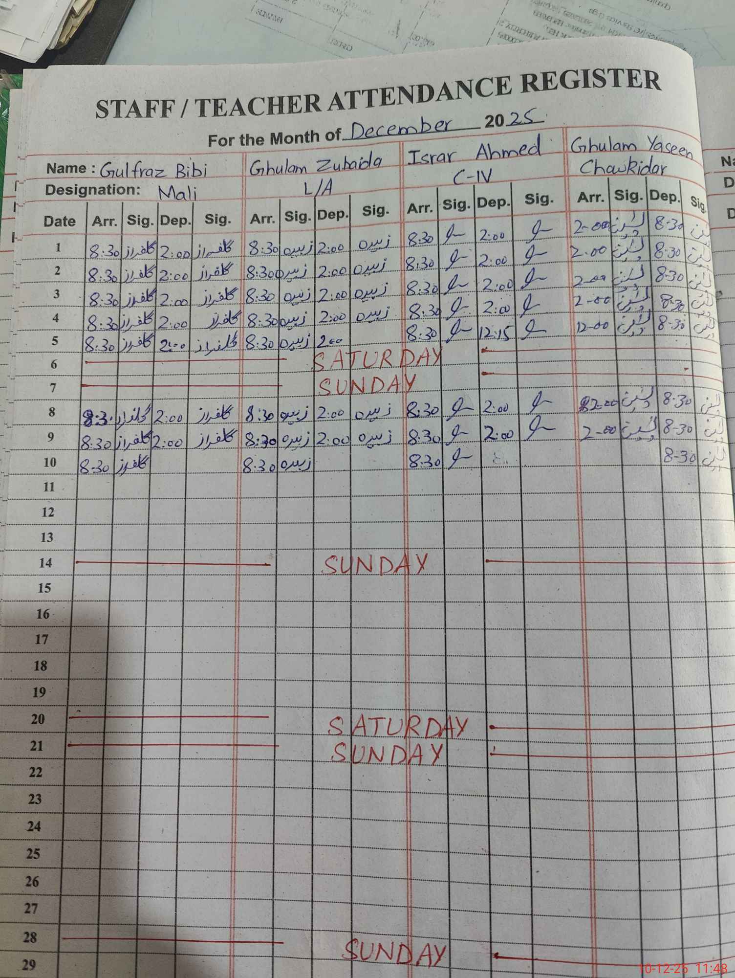 | CNIC | Full Name | Designation | R/C | Absence During Last Calender Month |