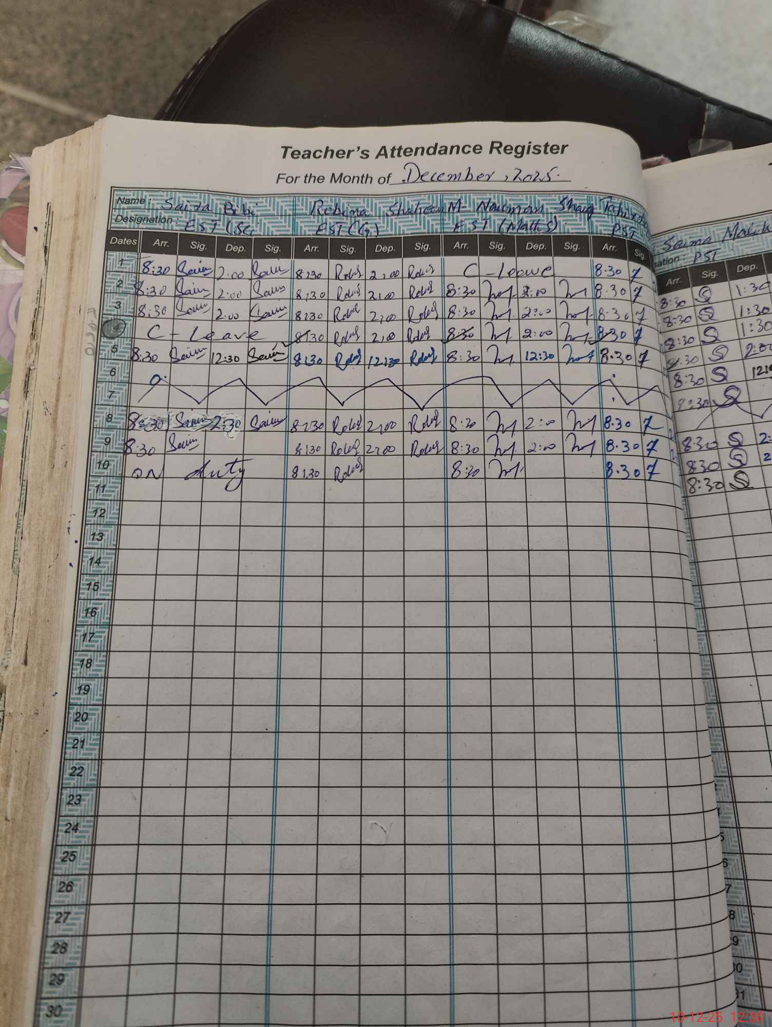 | Leave | Duty | Absent | Maternity | Medical | Ex- Pak |