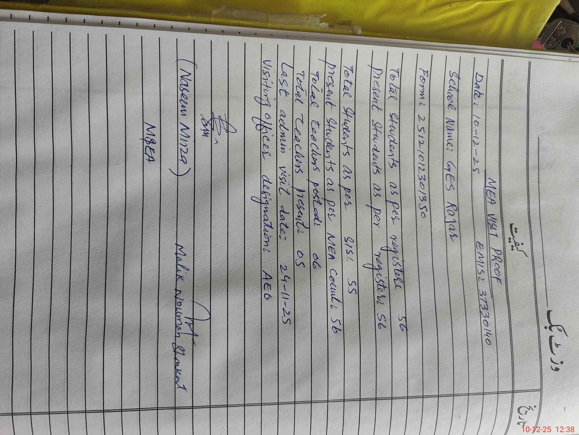 | Certified that this School was Inspected by the Undersigned MEA/DMO Today and the Information Stated Above is as Per Record. | |||||