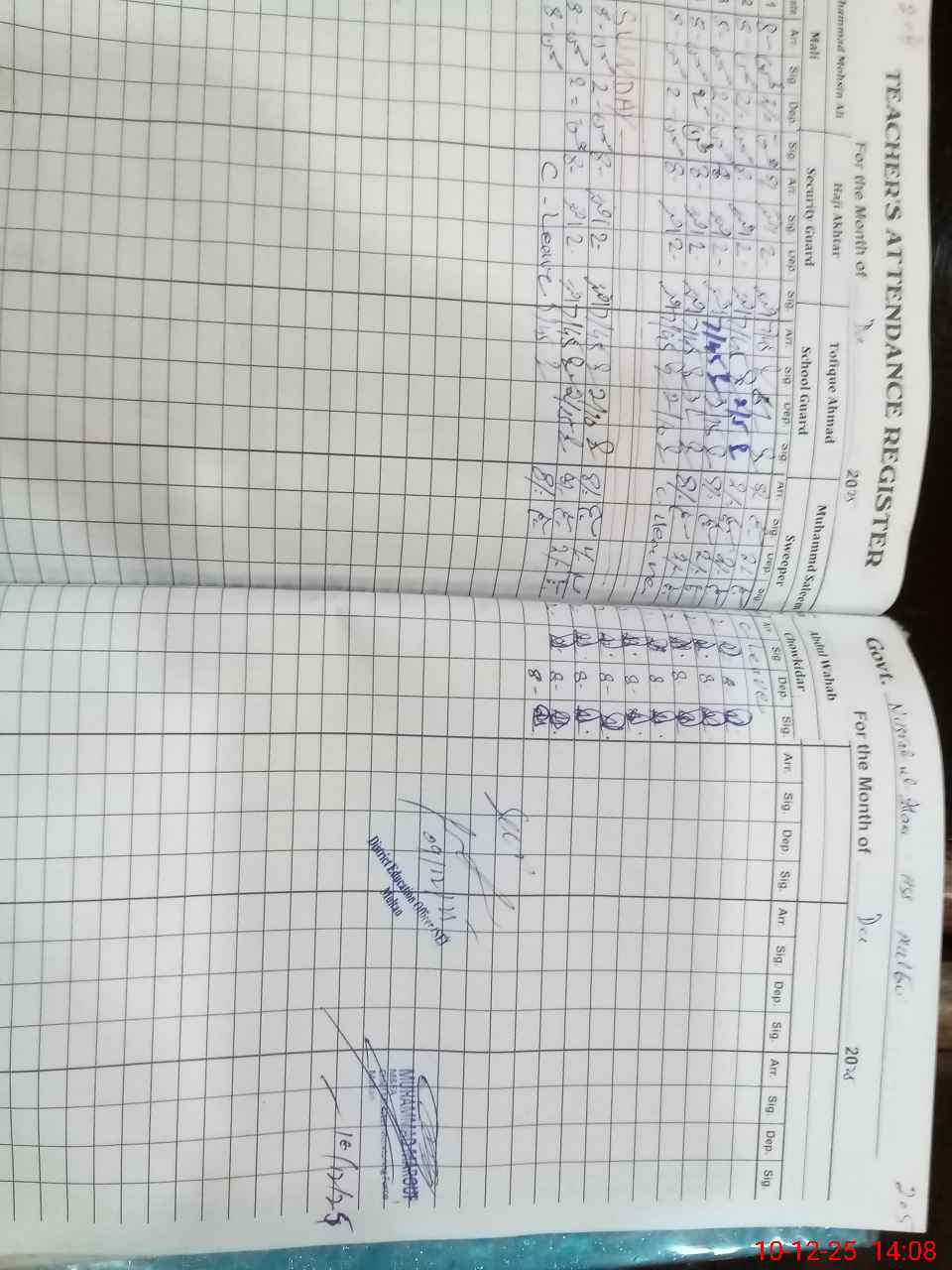 | 36**** | Ma**** UlHa**** | PST Arts | Regular | 0 | 0 | 0 | 0 | 0 | 0 | 0 | 0 | 0 | Absent (Un-Authorized) |