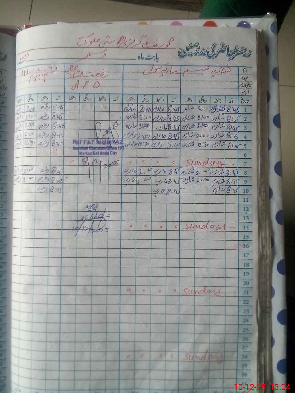 | Name: Fa**** Bi**** Designation: (School Headmaster's/Headmistress's) PST Phone/Cell Number: 03**** |