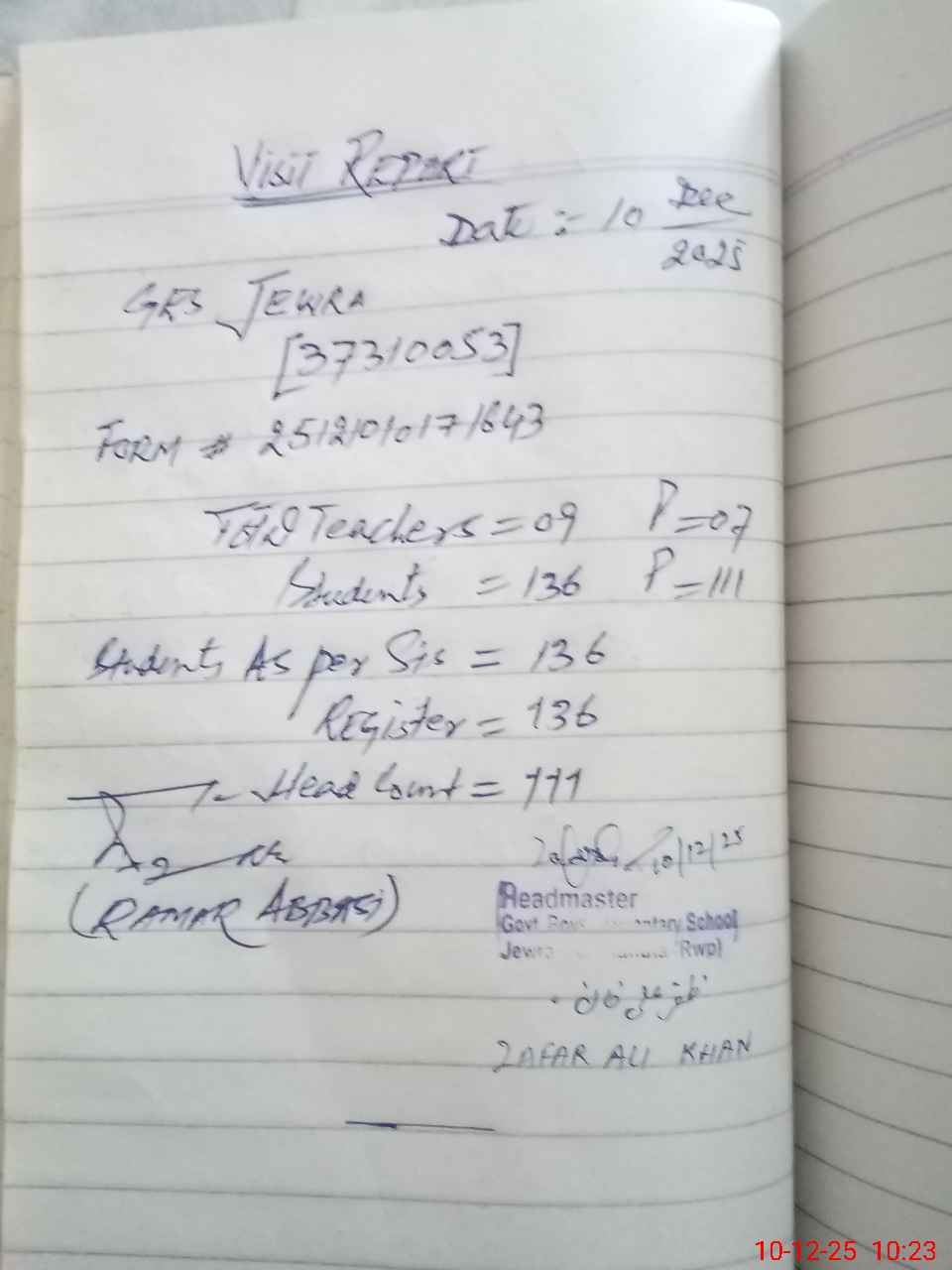 | Name: Za**** Al**** Kh**** Designation: (School Headmaster's/Headmistress's) EST AT Phone/Cell Number: 03**** |