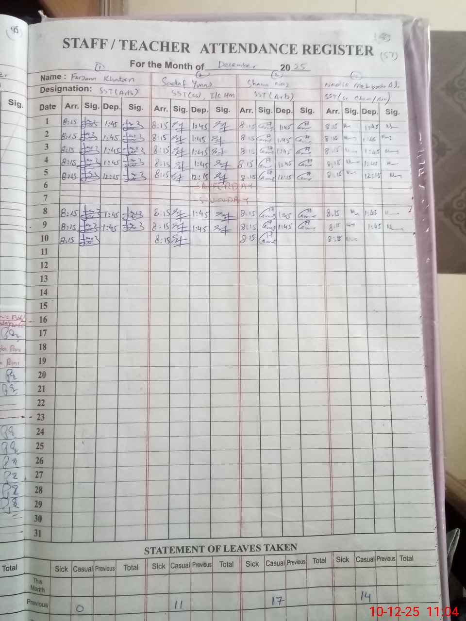 | Leave | Duty | Absent | Maternity | Medical | Ex- Pak |
