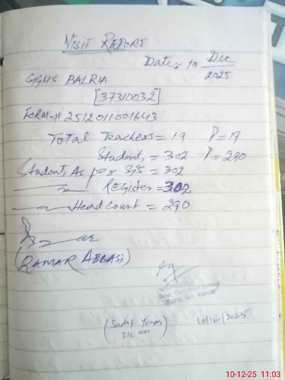 | EMIS Code: 37310032 | Name of School: GGHS BALRIA | |||