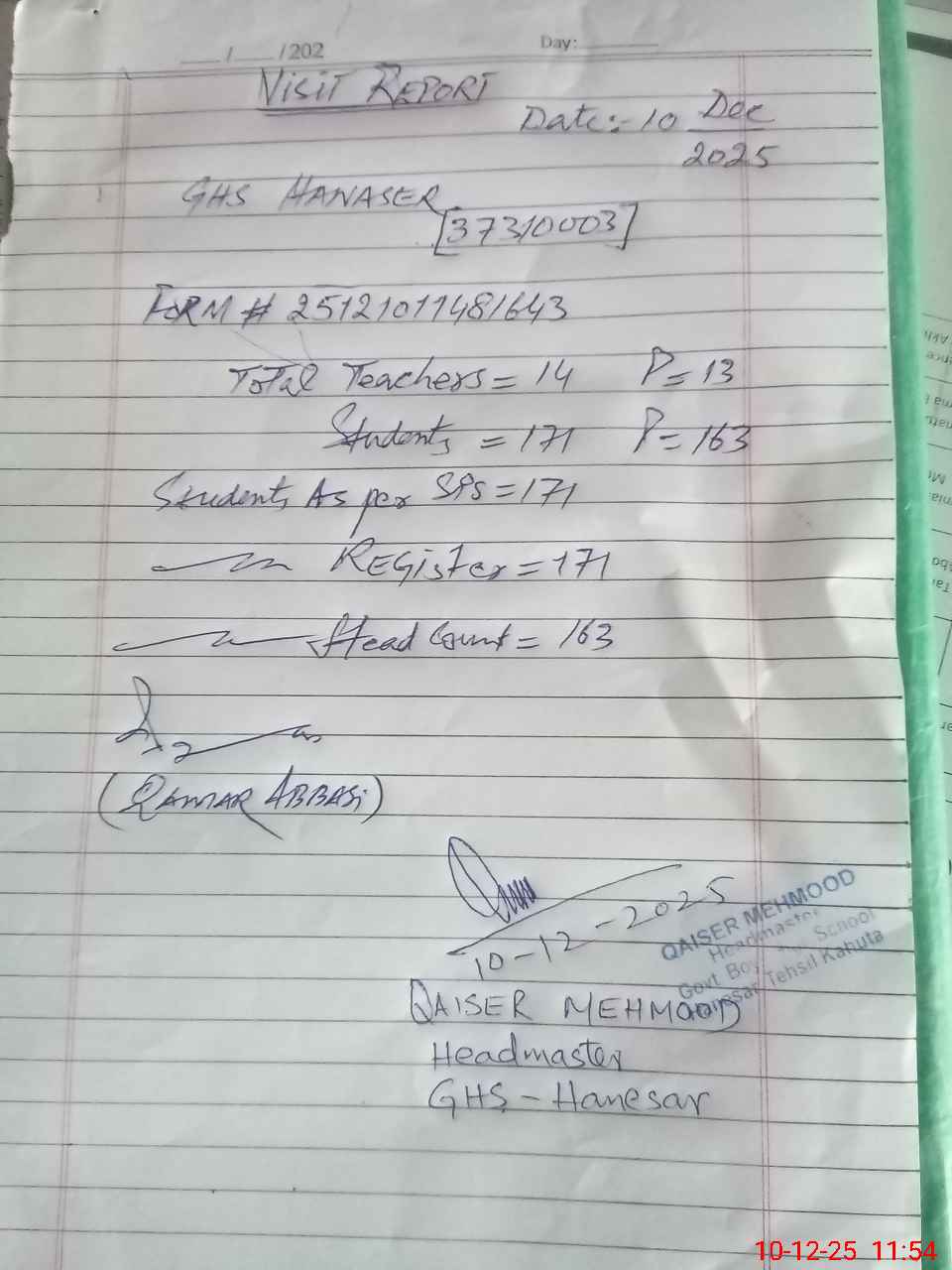 | EMIS Code: 37310003 | Name of School: GHS HANESAR | |||