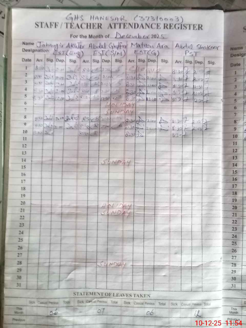 | Name: Mu**** Ja**** Designation: (School Headmaster's/Headmistress's) SST (Science) Phone/Cell Number: 03**** |