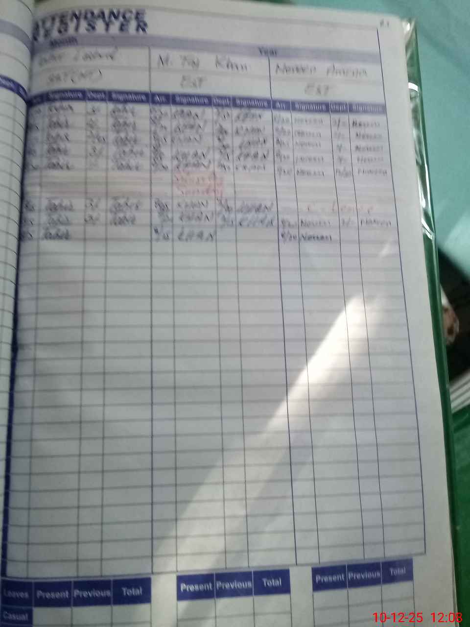 | CNIC | Full Name | Designation | R/C | Absence During Last Calender Month |