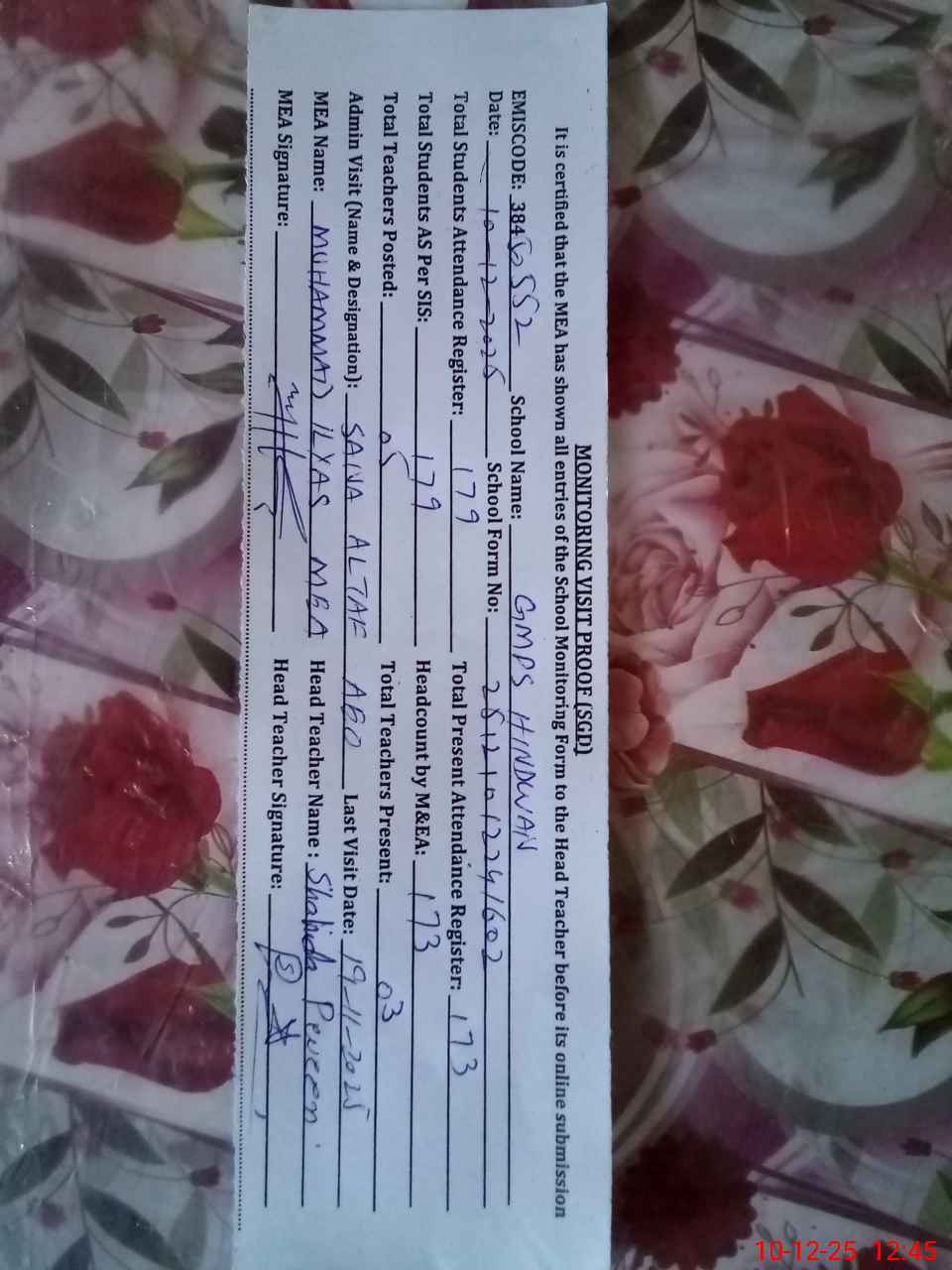 | EMIS Code: 38450552 | Name of School: GMPS HINDWAN | |||