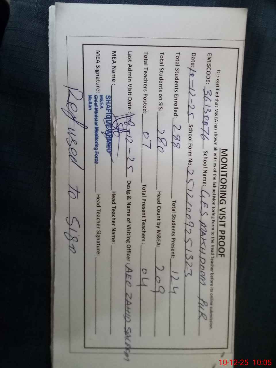| EMIS Code: 36130076 | Name of School: GES MAKHDOOM PUR | |||