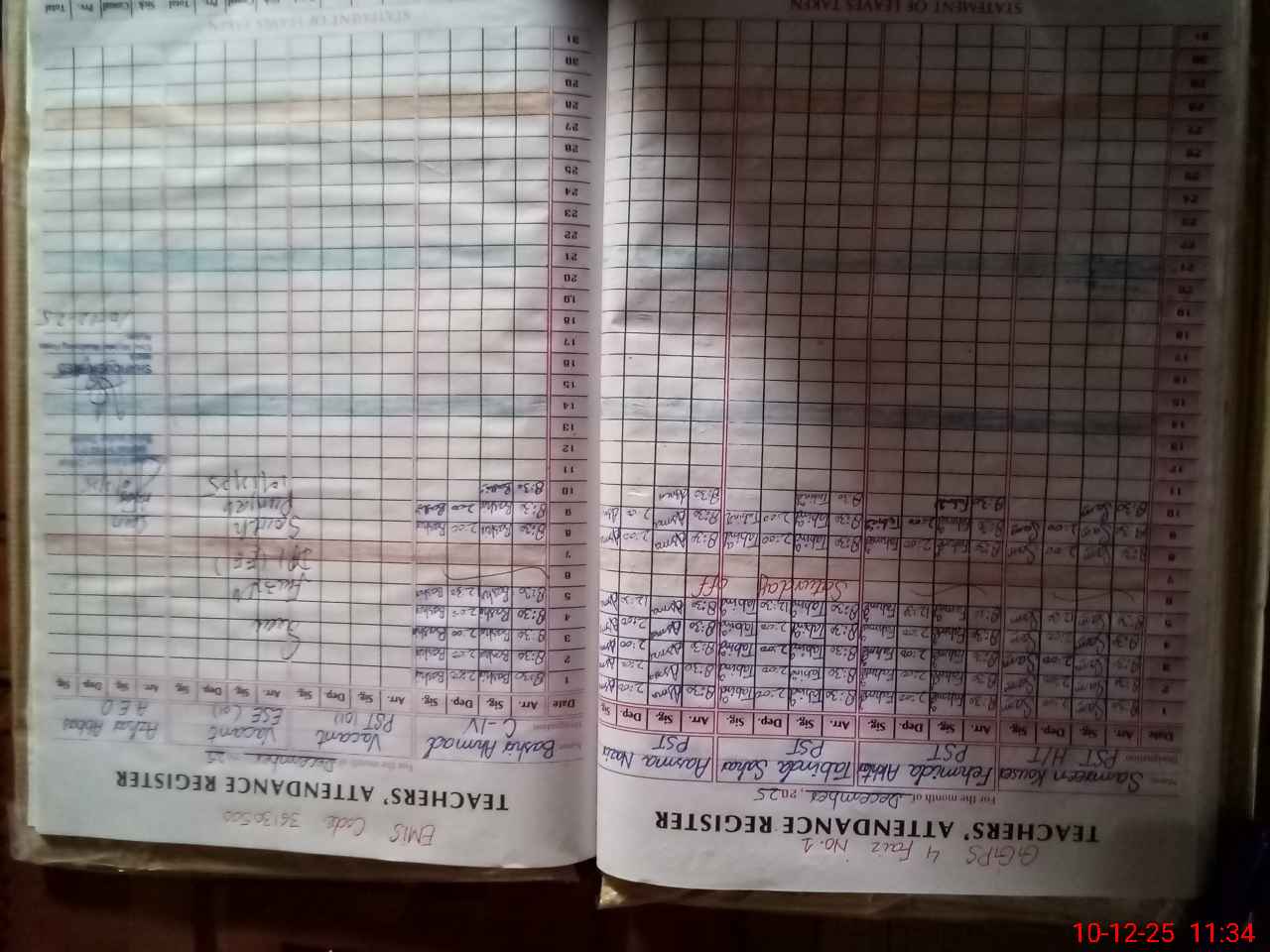 | CNIC | Full Name | Designation | R/C | Absence During Last Calender Month |