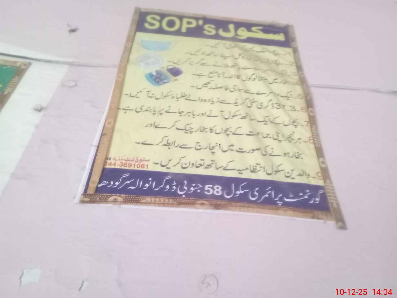 | EMIS Code: 38420243 | Name of School: GPS CHAK NO 58 A SB | |||
