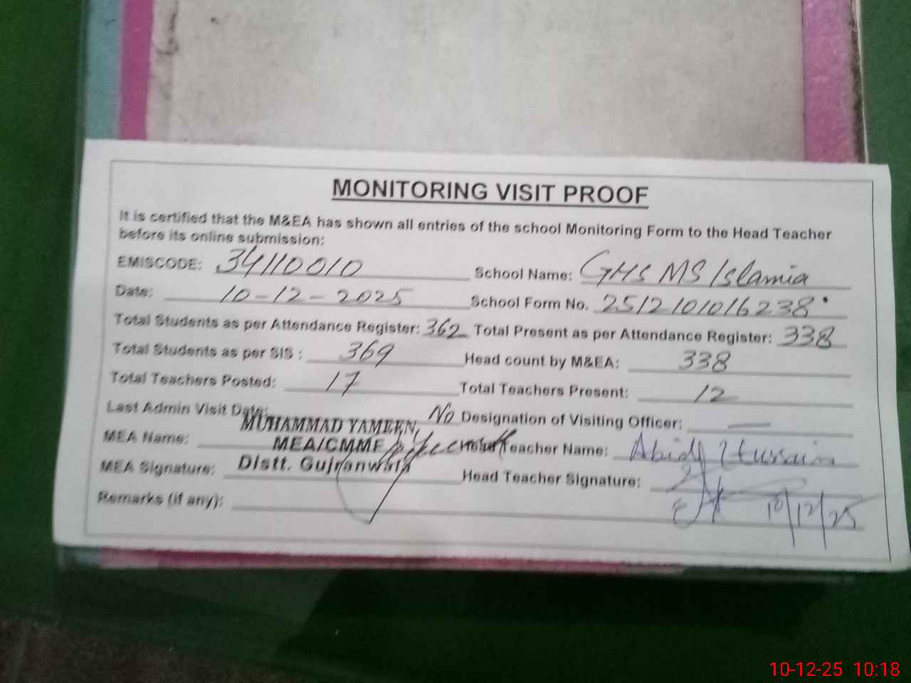 | EMIS Code: 34110010 | Name of School: GHS M.S. ISLAMIA | |||