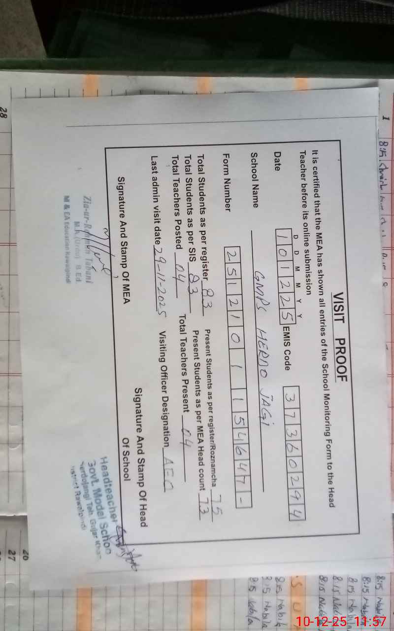 | EMIS Code: 37360294 | Name of School: GPS MODEL HERDO JHAGI | |||