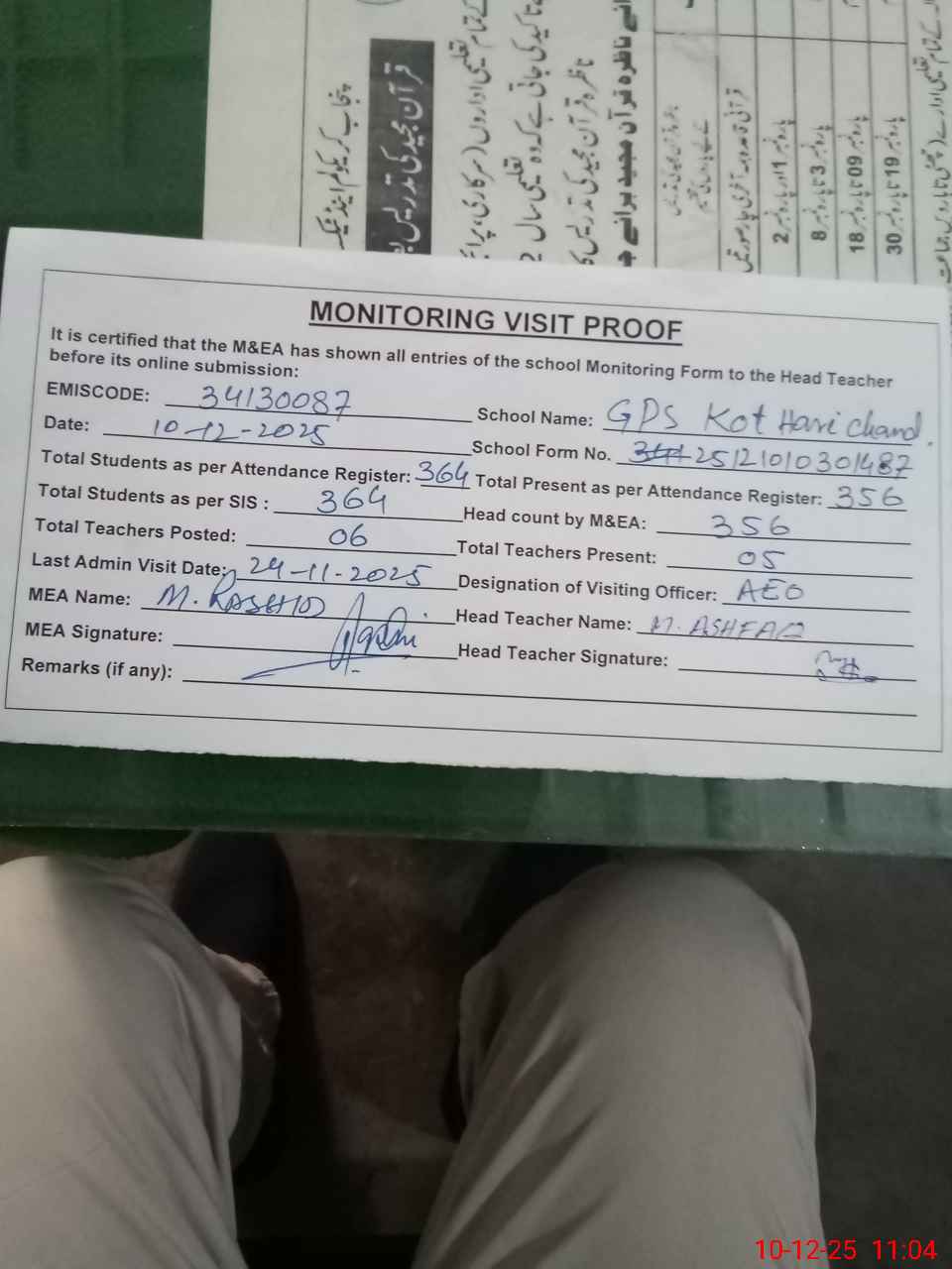 | EMIS Code: 34130087 | Name of School: GPS KOT HARI CHAND | |||
