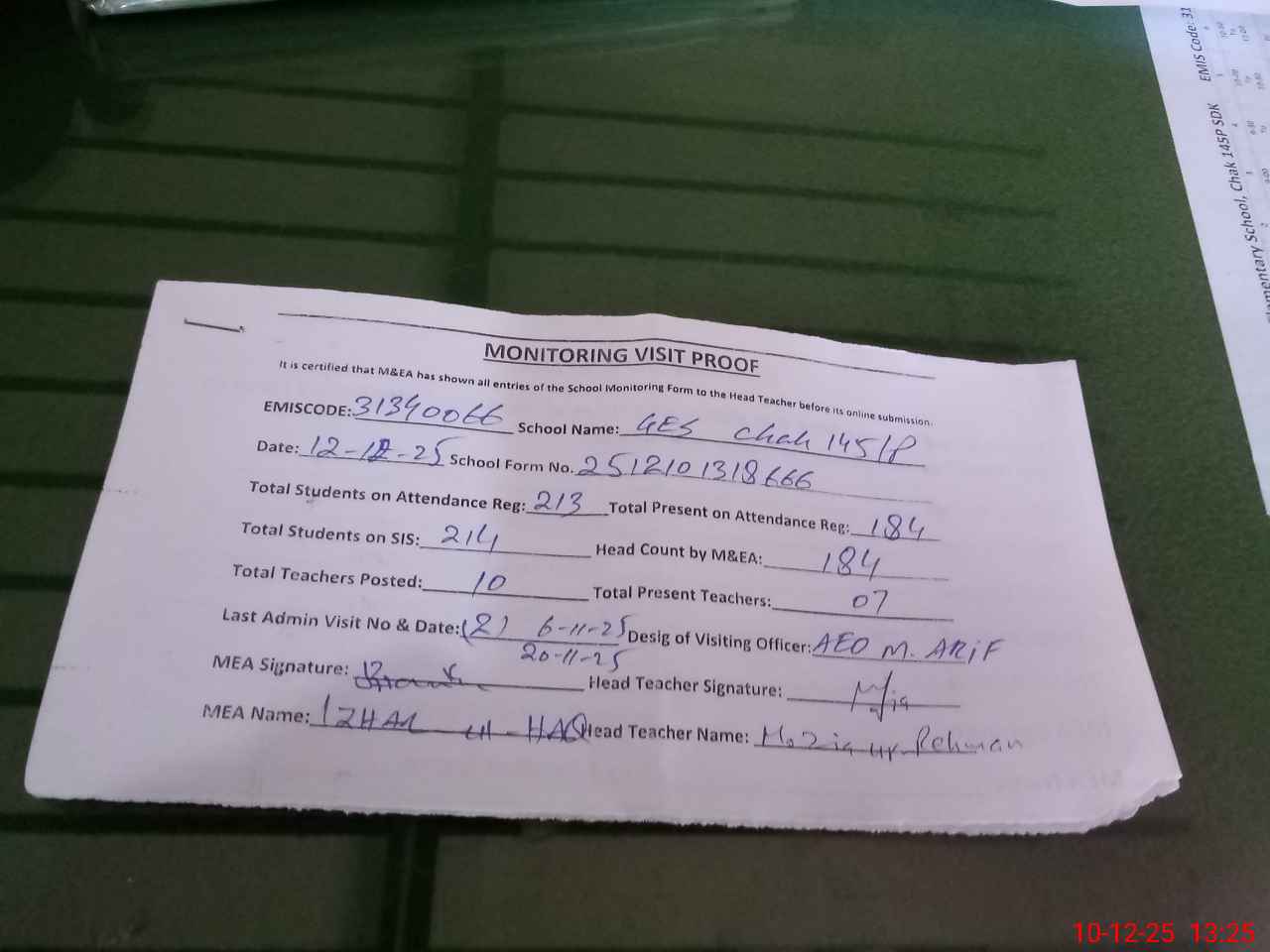 | EMIS Code: 31340066 | Name of School: GES CHAK NO 145/P | |||