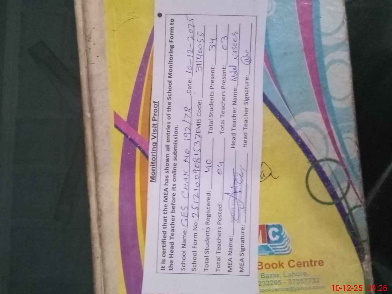 | EMIS Code: 31140055 | Name of School: GES CHAK NO. 192/7-R | |||