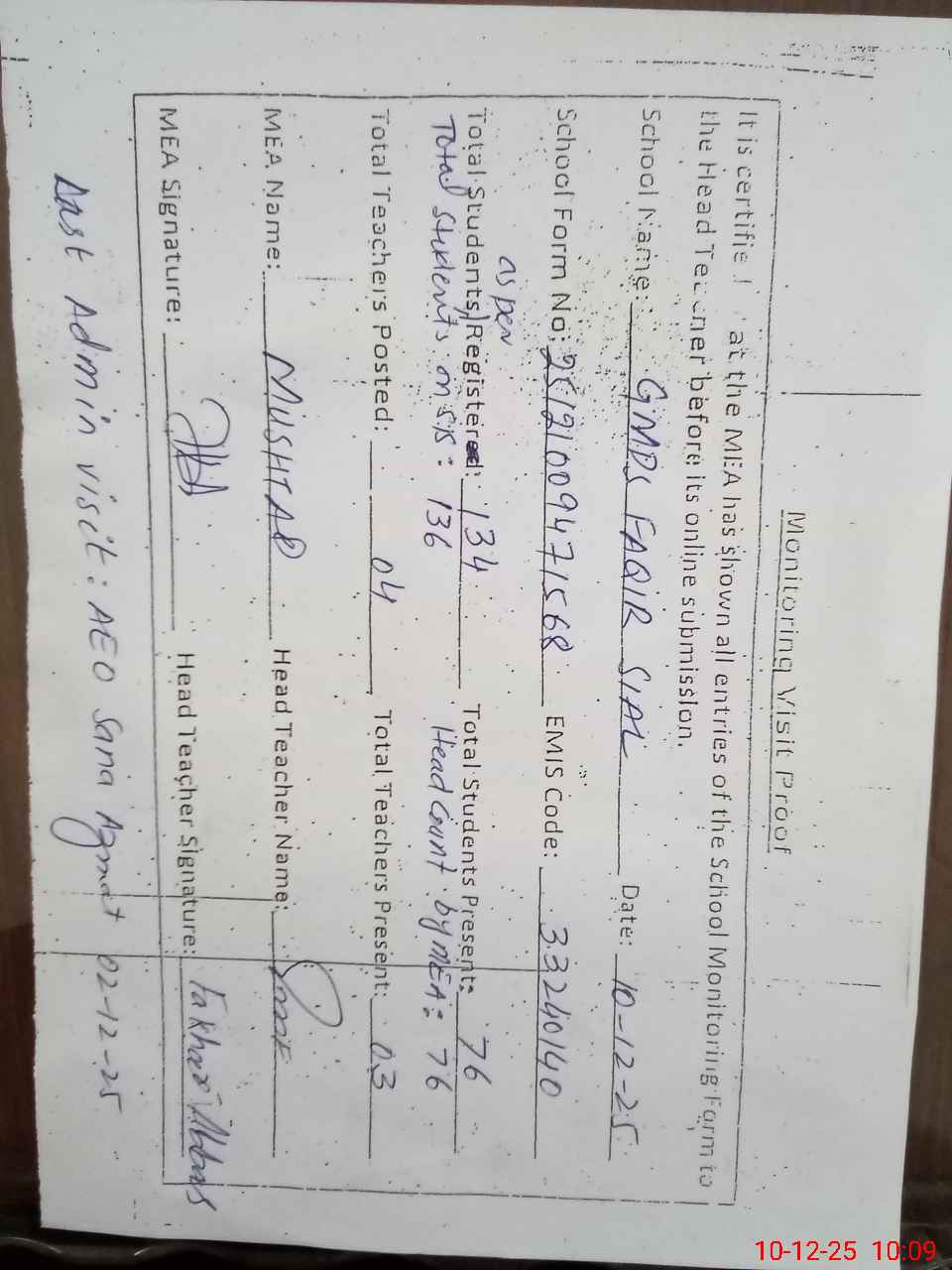 | EMIS Code: 33240140 | Name of School: GMPS FAQIR SIAL | |||