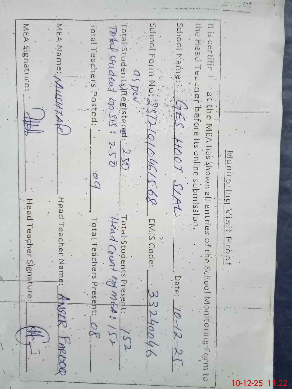 | EMIS Code: 33240046 | Name of School: GES HOOT SIAL | |||