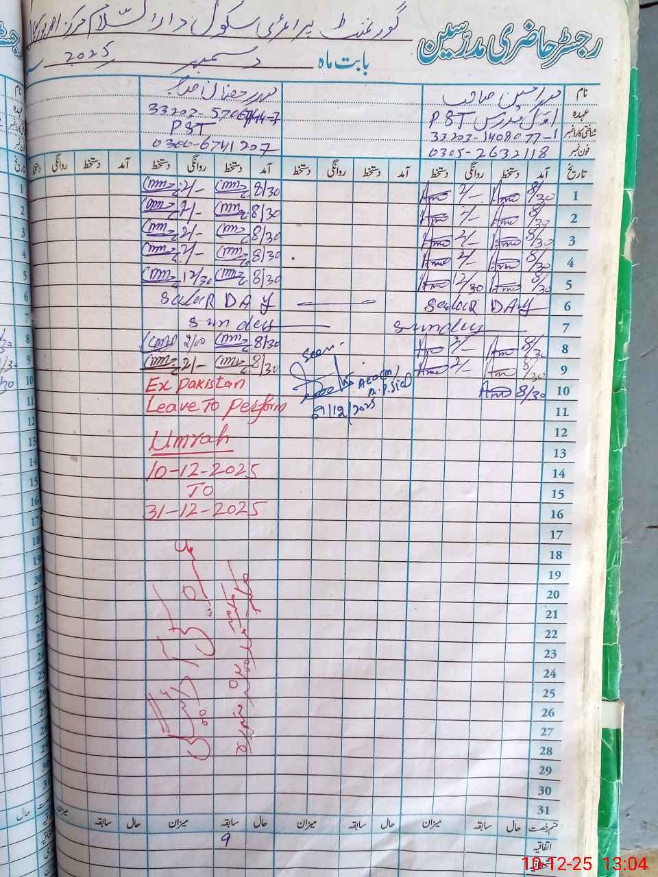 | Name: MU**** AM**** Designation: (School Headmaster's/Headmistress's) PST Phone/Cell Number: 03**** |