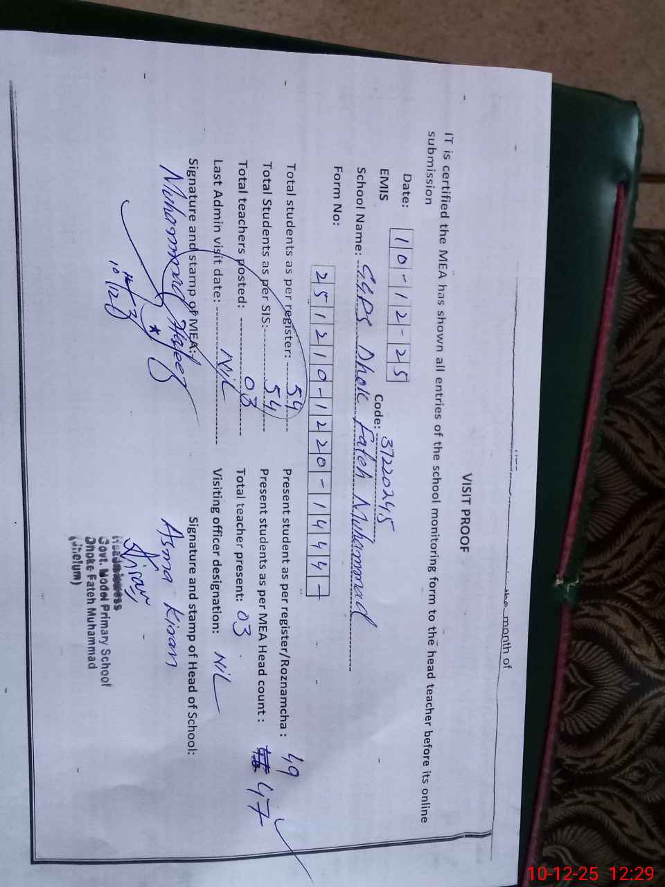 | EMIS Code: 37220245 | Name of School: GGPS DHOK FATEH MUHAMMAD | |||