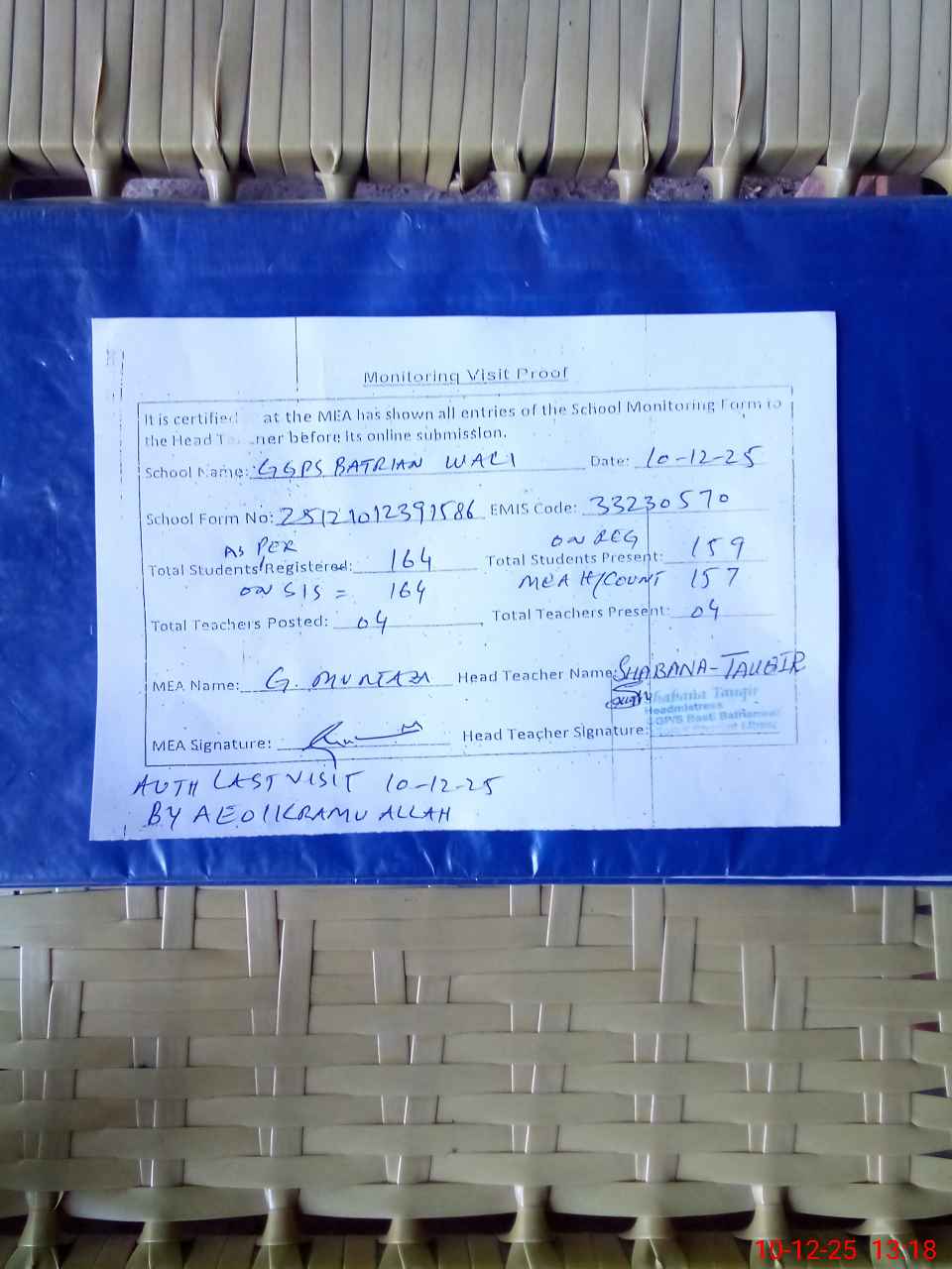| EMIS Code: 33230570 | Name of School: GGPS BATRIAN WALI | |||