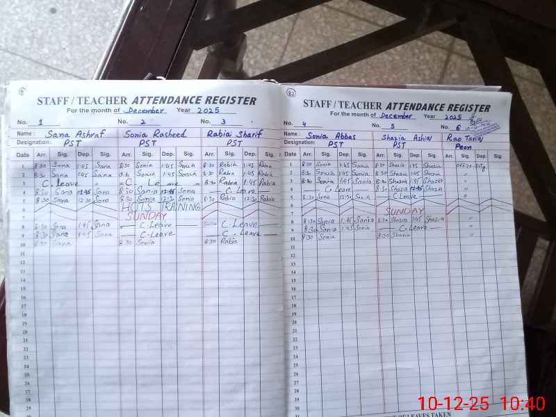 | Total no. of Classrooms: 3 No. of Classrooms Used for Teaching: 3 No. of Classrooms Storing Old Furniture, FTBs, etc: 0Comments if Any: PEON TARIQ IS ON OTHER DUTY VERBALLY NO WRITTEN ORDER AVAILABLE OF DUTY SO HE IS ABSENT |
