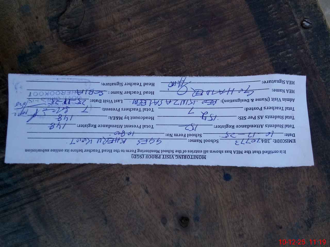 | Certified that this School was Inspected by the Undersigned MEA/DMO Today and the Information Stated Above is as Per Record. | |||||