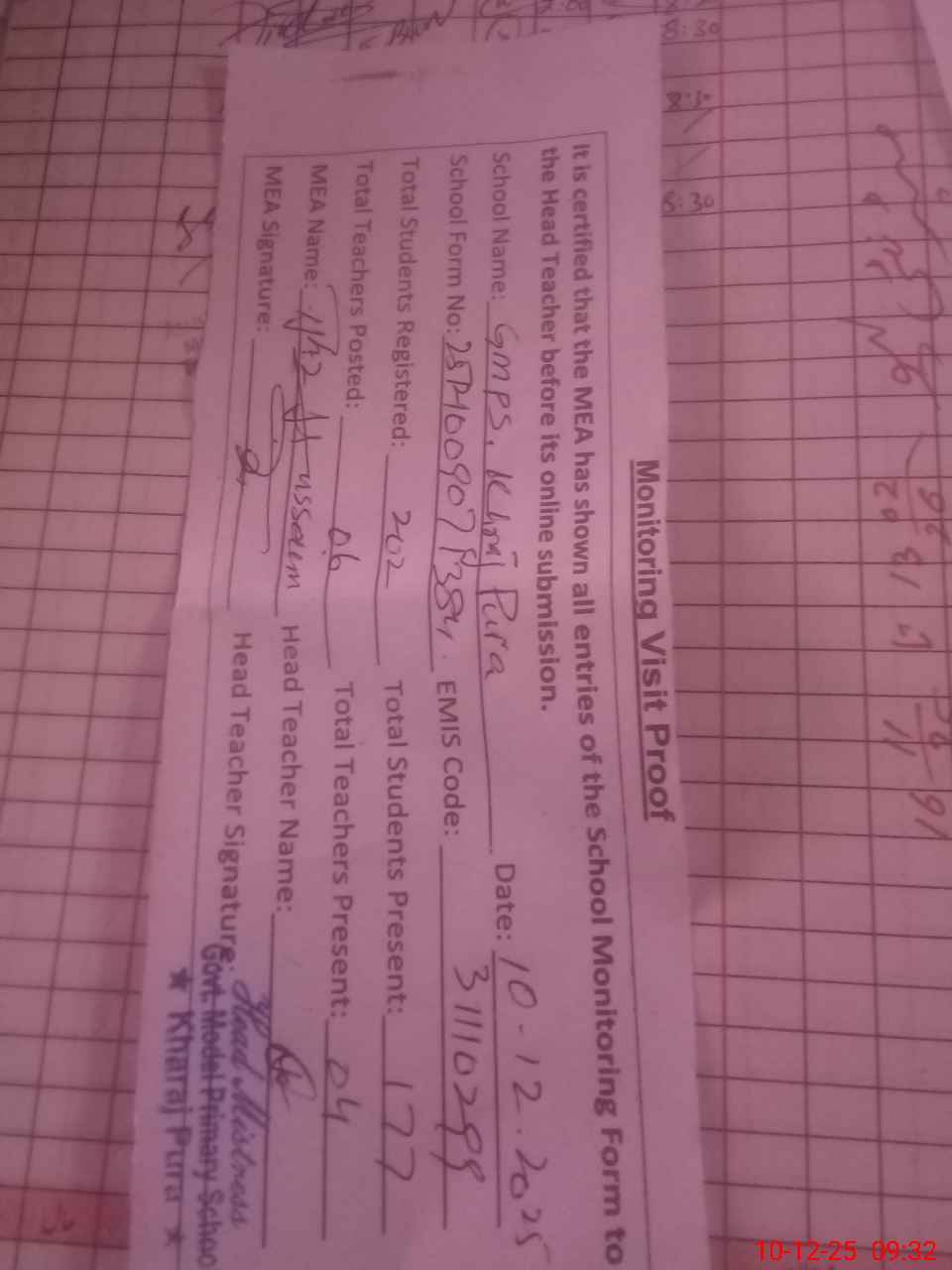 | EMIS Code: 31110299 | Name of School: GMPS KHARAJ PURA | |||