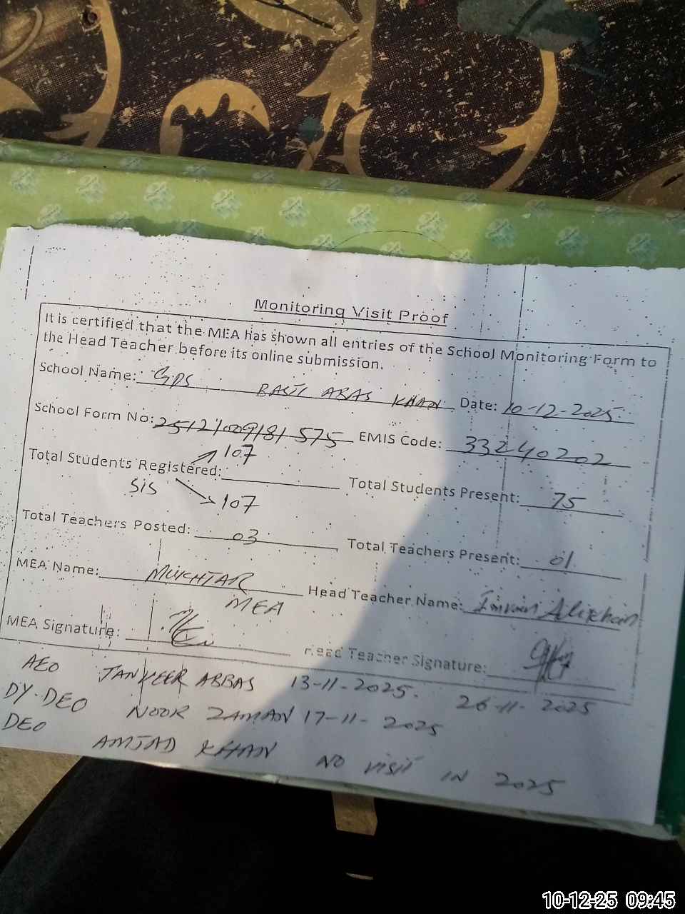 | EMIS Code: 33240202 | Name of School: GPS BASTI ABBASS KHAN | |||
