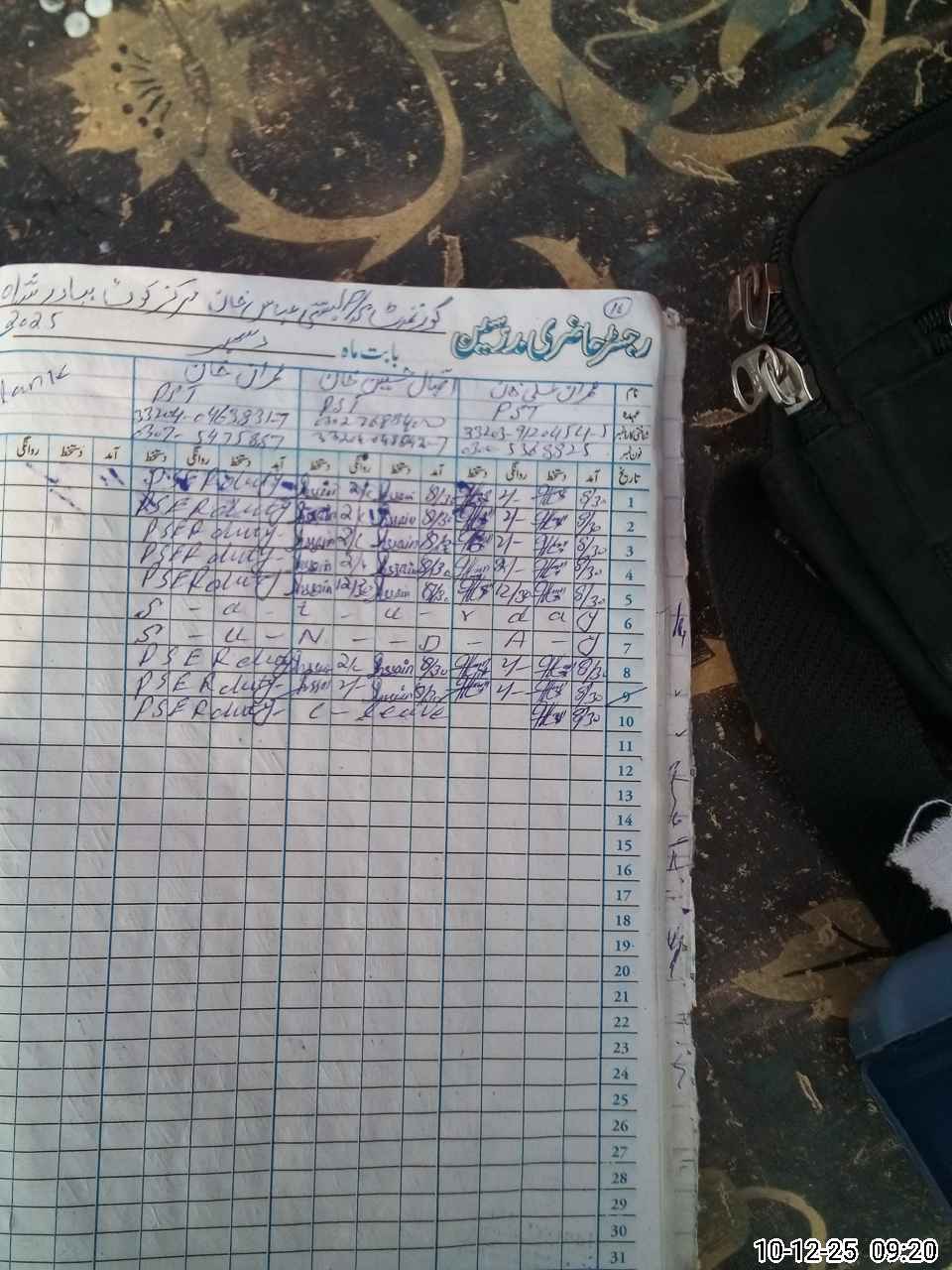| 33**** | Iq**** Hu**** Kh**** | PST Science/Maths | Regular | 0 | 0 | 0 | 0 | 0 | 0 | 0 | 0 | 0 | Absent (Un-Authorized) |