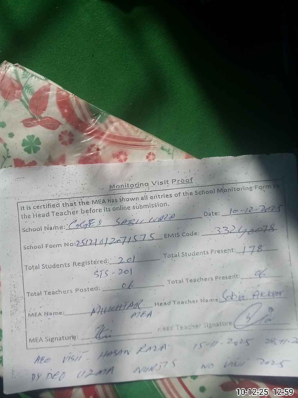 | Certified that this School was Inspected by the Undersigned MEA/DMO Today and the Information Stated Above is as Per Record. | |||||