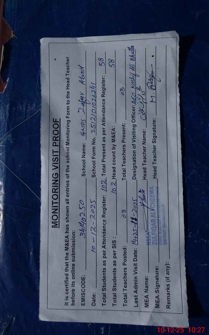 | EMIS Code: 34140250 | Name of School: GMPS ZAFAR ABAD | |||