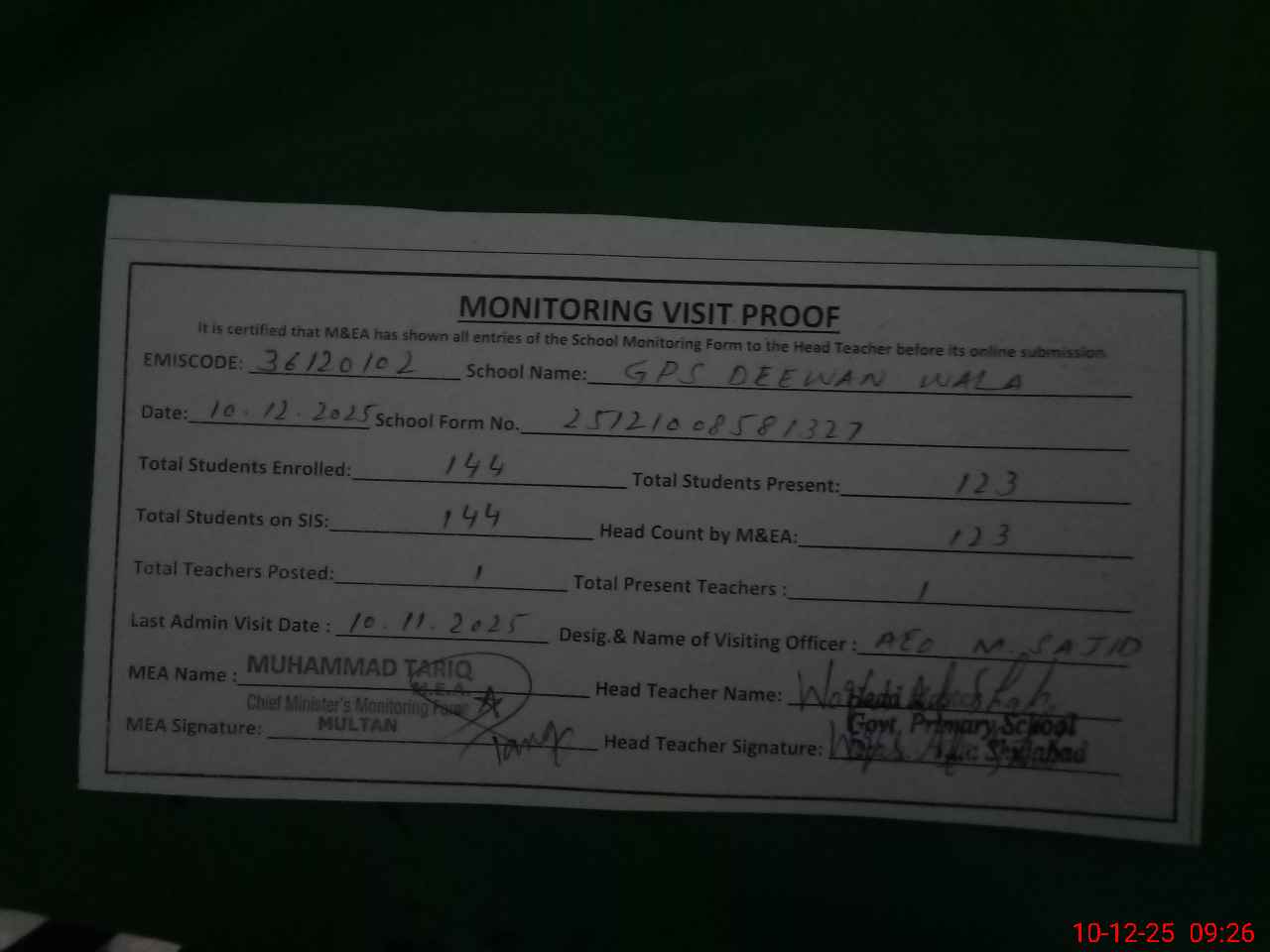 | EMIS Code: 36120102 | Name of School: GPS DEEWAN WALA P/O LASURI MAOZA PUNJANI | |||