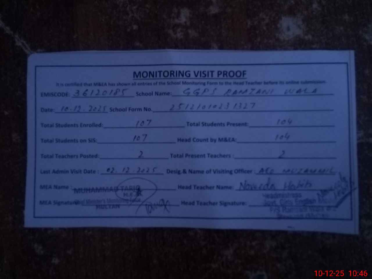 | EMIS Code: 36120185 | Name of School: GGPS RAMZANI WALA NO.2 | |||