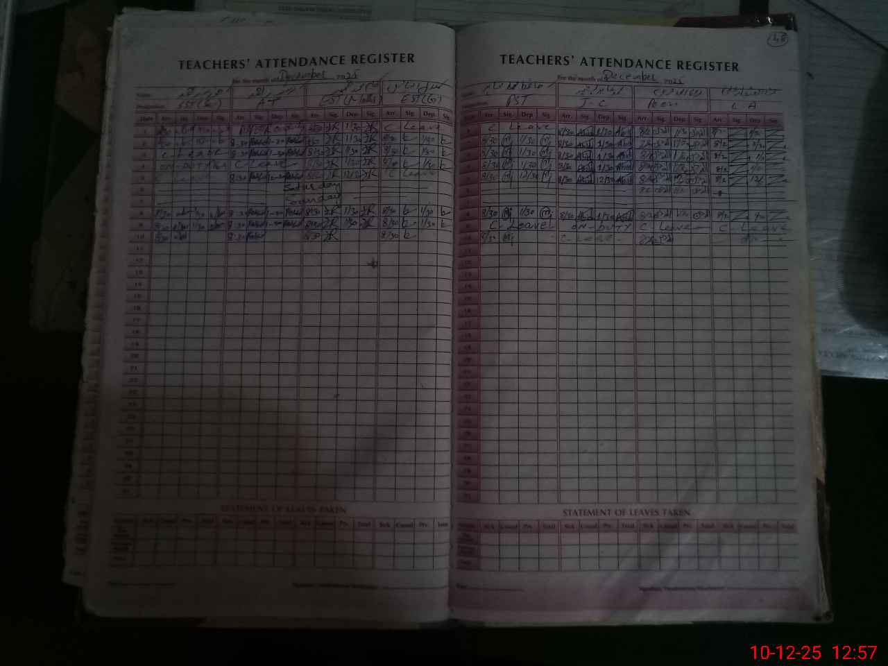 | Leave | Duty | Absent | Maternity | Medical | Ex- Pak |