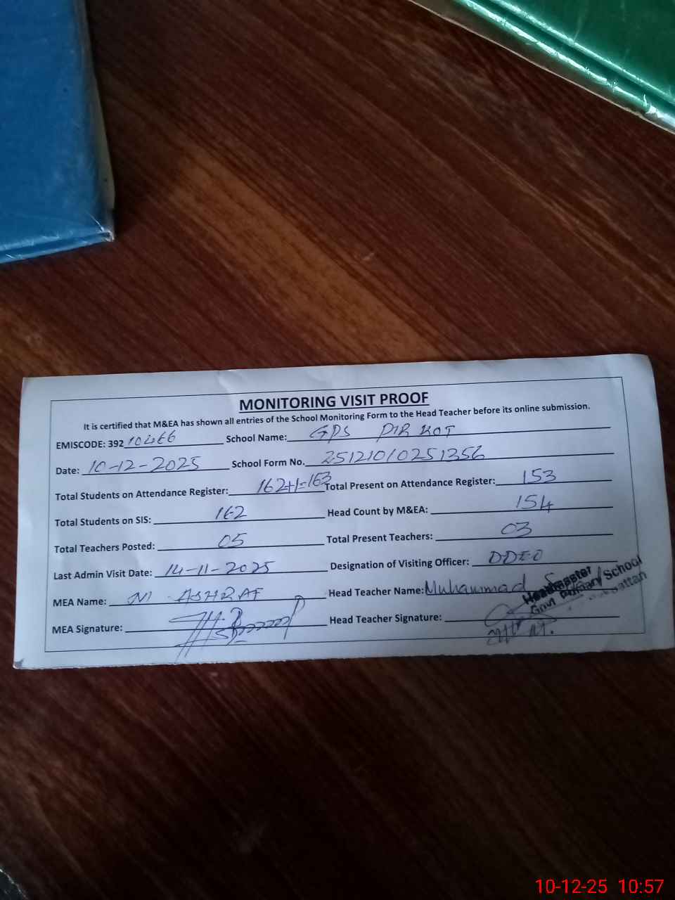 | EMIS Code: 39210466 | Name of School: GPS PIR KOT PAKPATTAN | |||