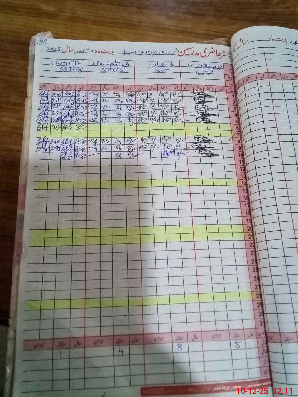 | CNIC | Full Name | Designation | R/C | Absence During Last Calender Month |