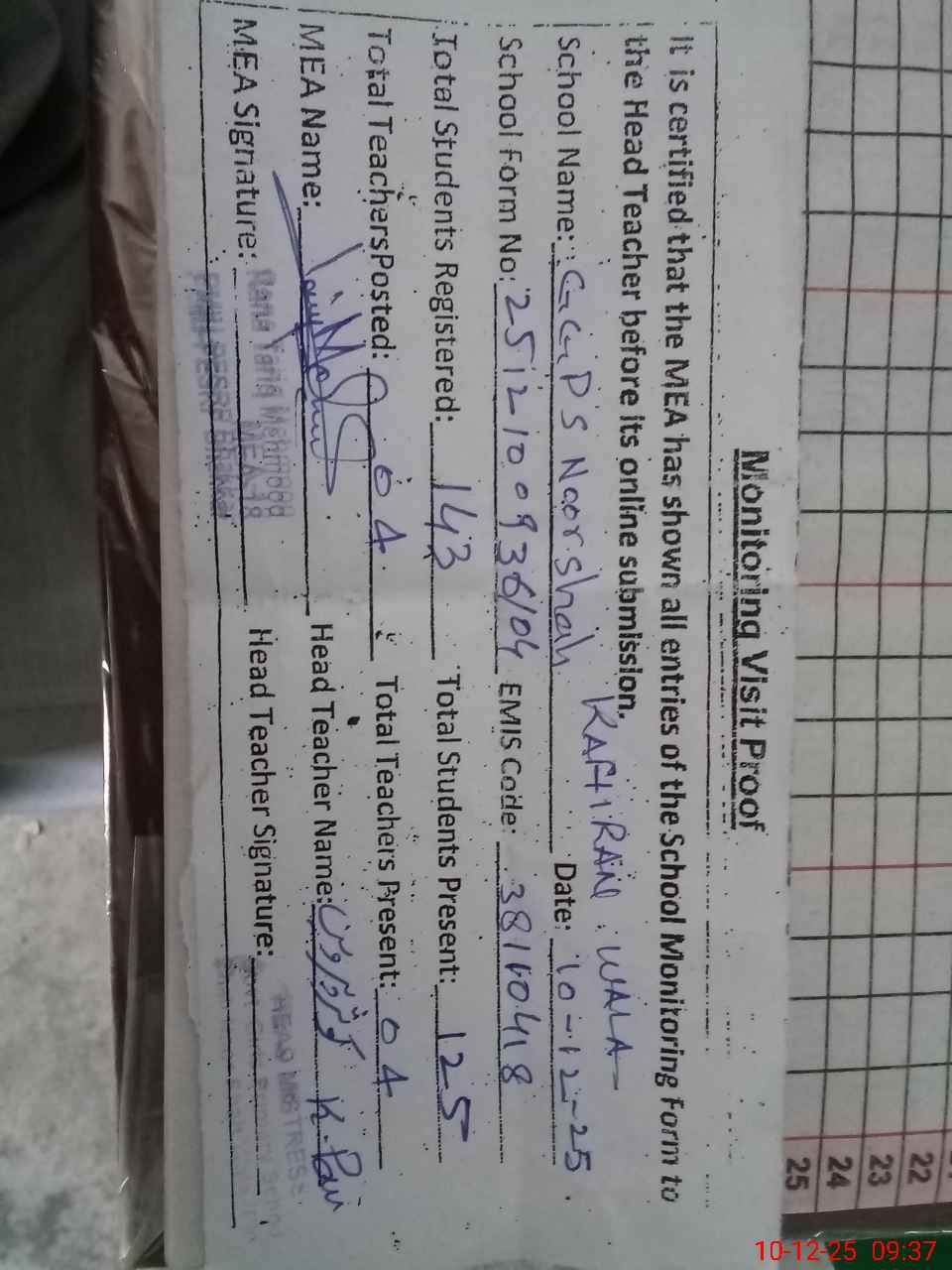 | EMIS Code: 38110418 | Name of School: GGPS NOOR SHAH KAHIRAN WALA | |||