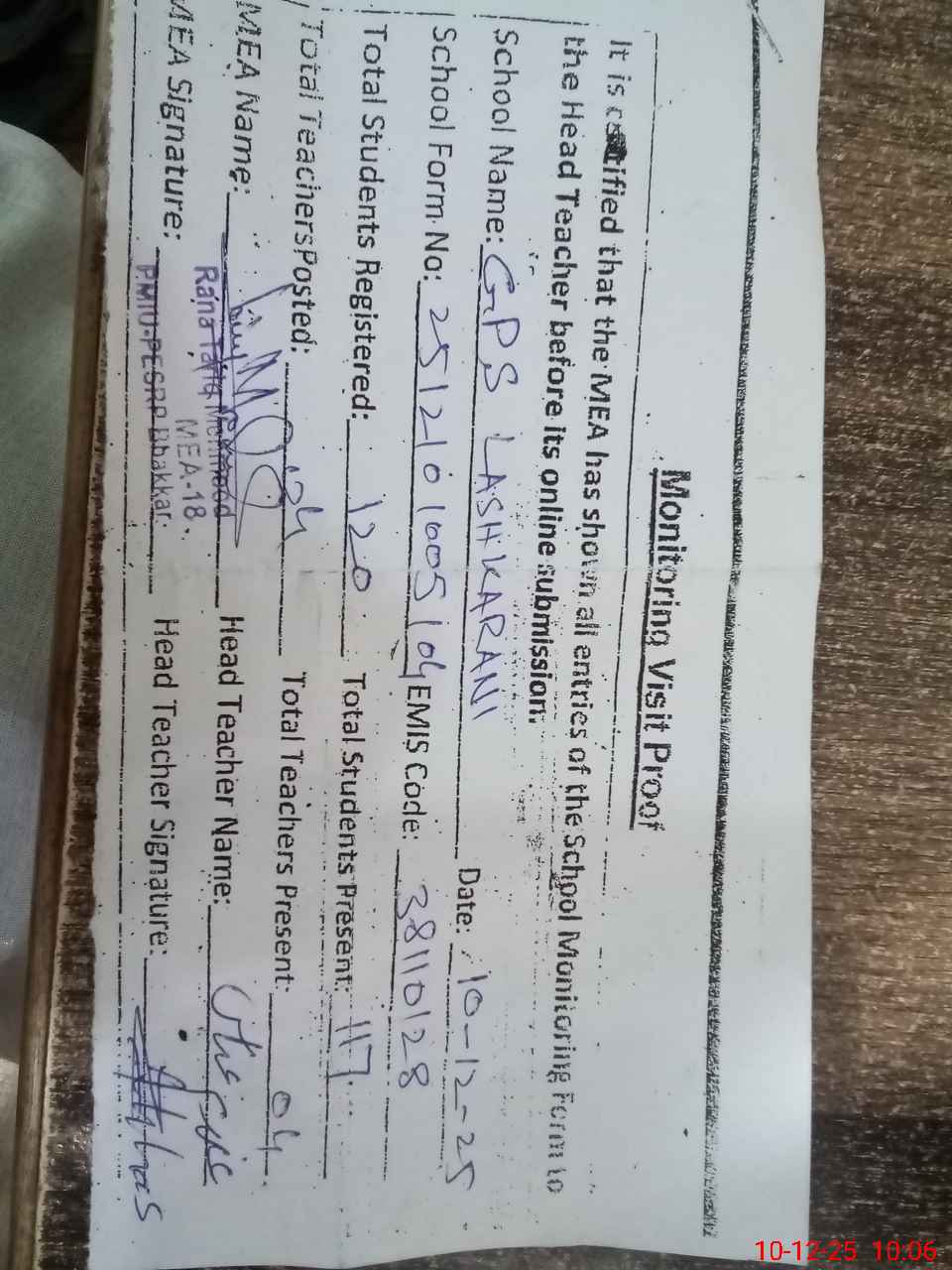 | EMIS Code: 38110128 | Name of School: GPS LASHKARANI | |||
