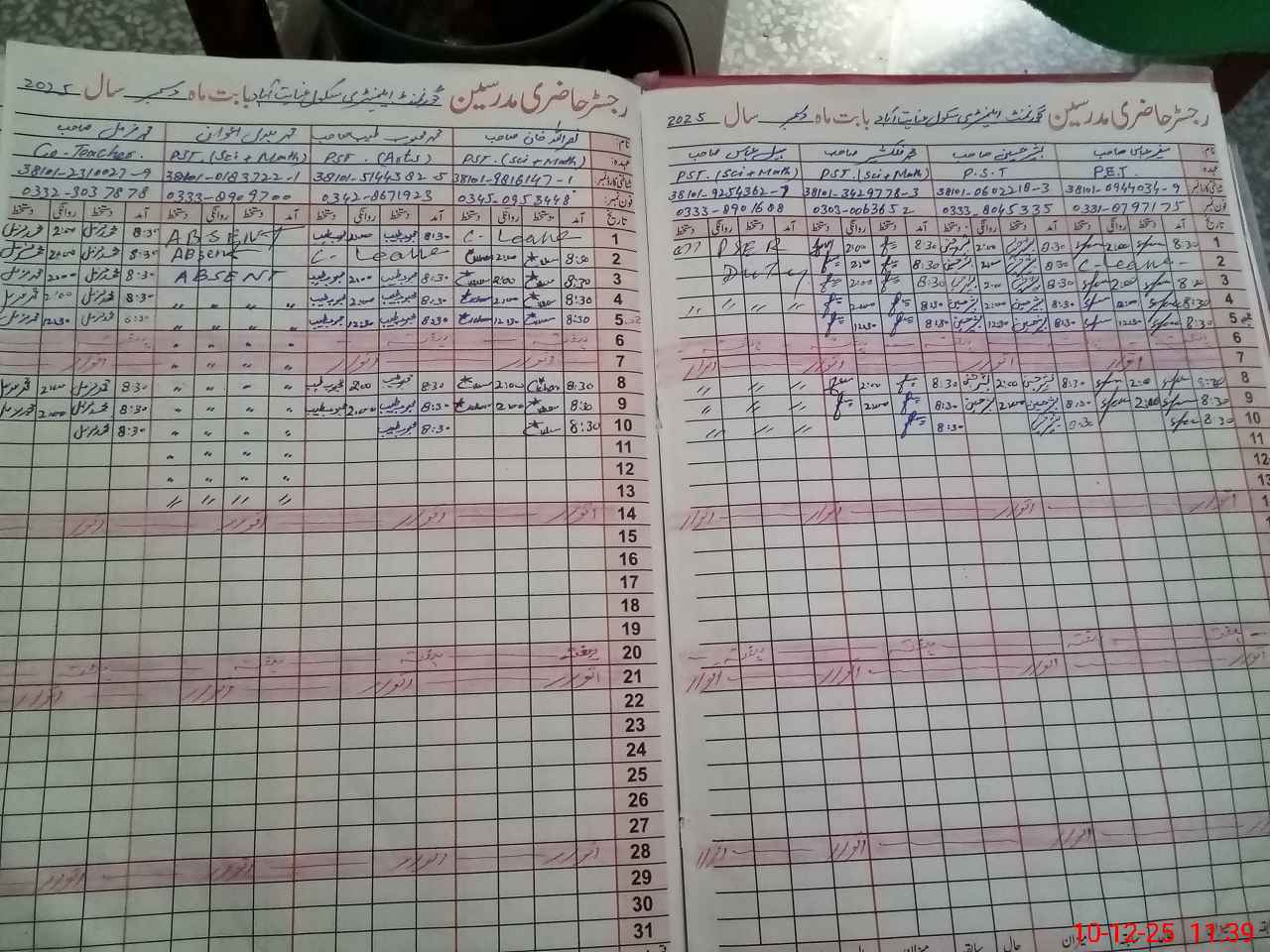 | Remarks (Use Separate Page if Required): Mr Muhammad Bilal Awan PST NIC No 3810101837221 is unauthorised absent w e f 30 Aug 2024 till date when reported absent on 10 December 2025 (Total period of his absence is 1 year and 3 months ) but no appropriate action is taken against him by the competent authority | |||||