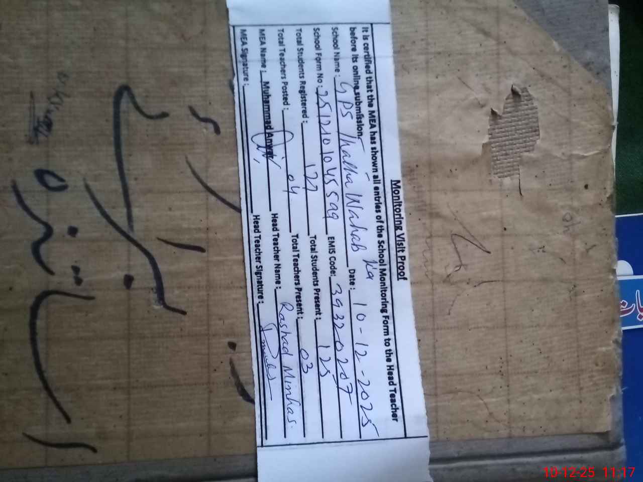 | EMIS Code: 39320207 | Name of School: GPS THATHA WAHAB KA | |||