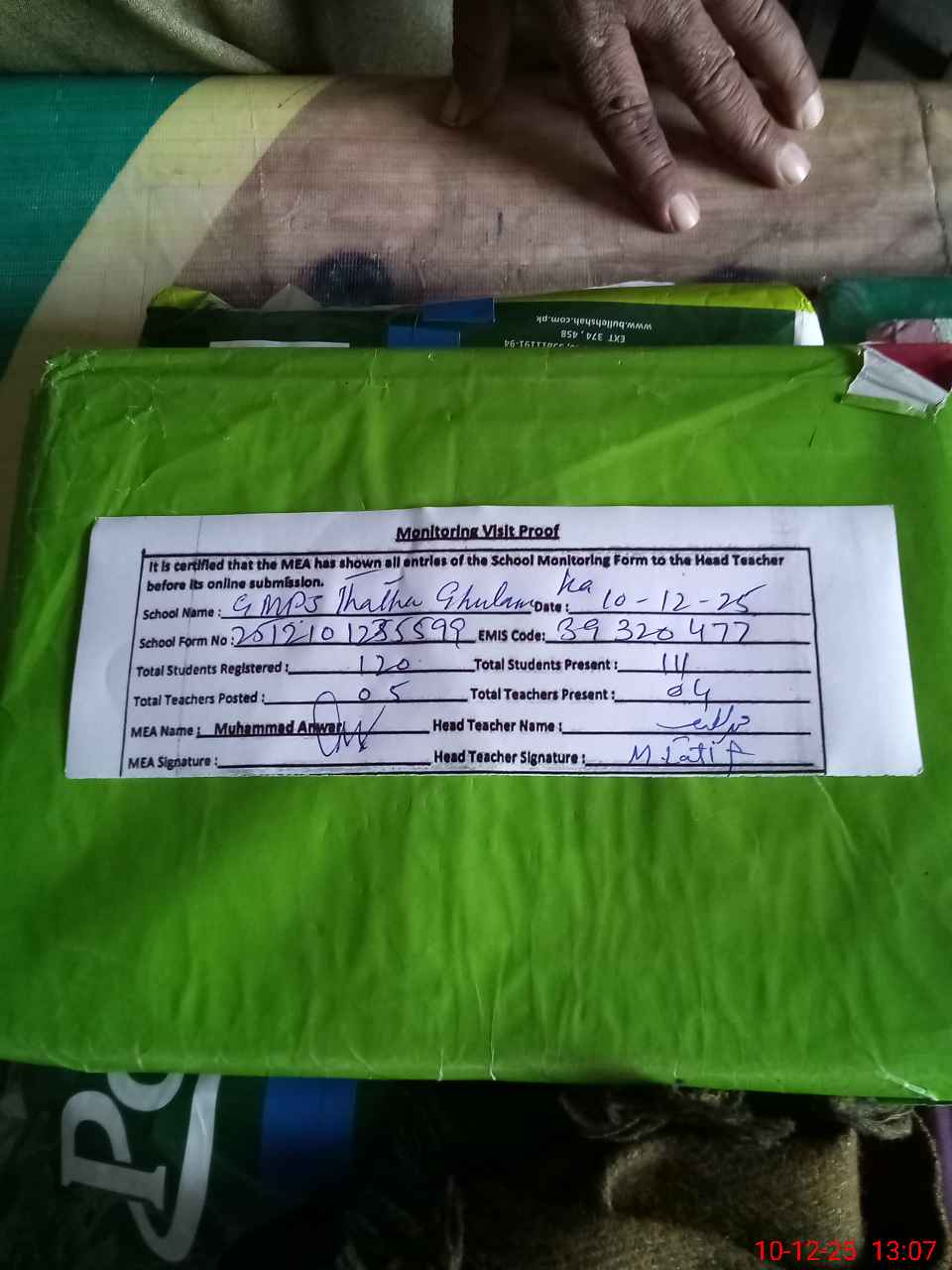 | EMIS Code: 39320477 | Name of School: GMPS THATHA GHULAM KAY | |||