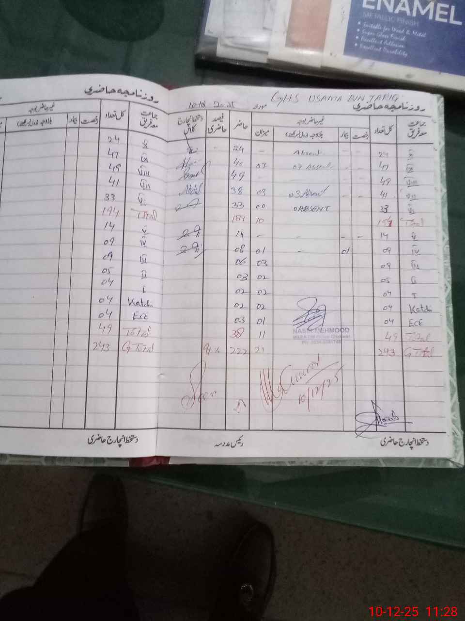 | CNIC | Full Name | Designation | R/C | Absence During Last Calender Month |