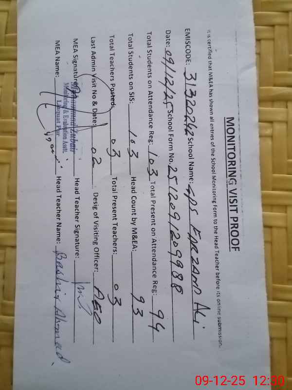 | EMIS Code: 31320242 | Name of School: GPS FARZAND ALI | |||
