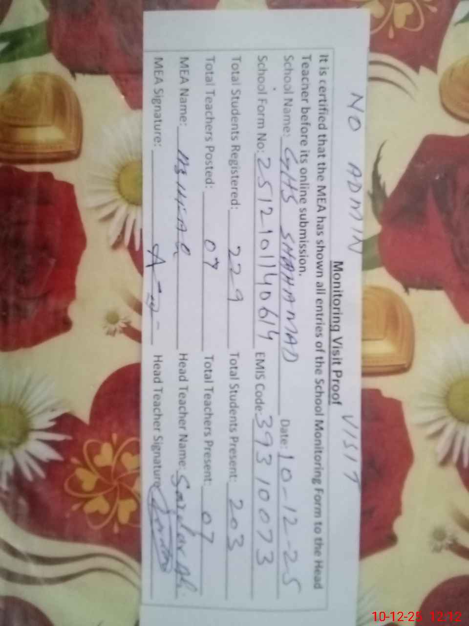 | EMIS Code: 39310073 | Name of School: GHS SHAHAMAD | |||
