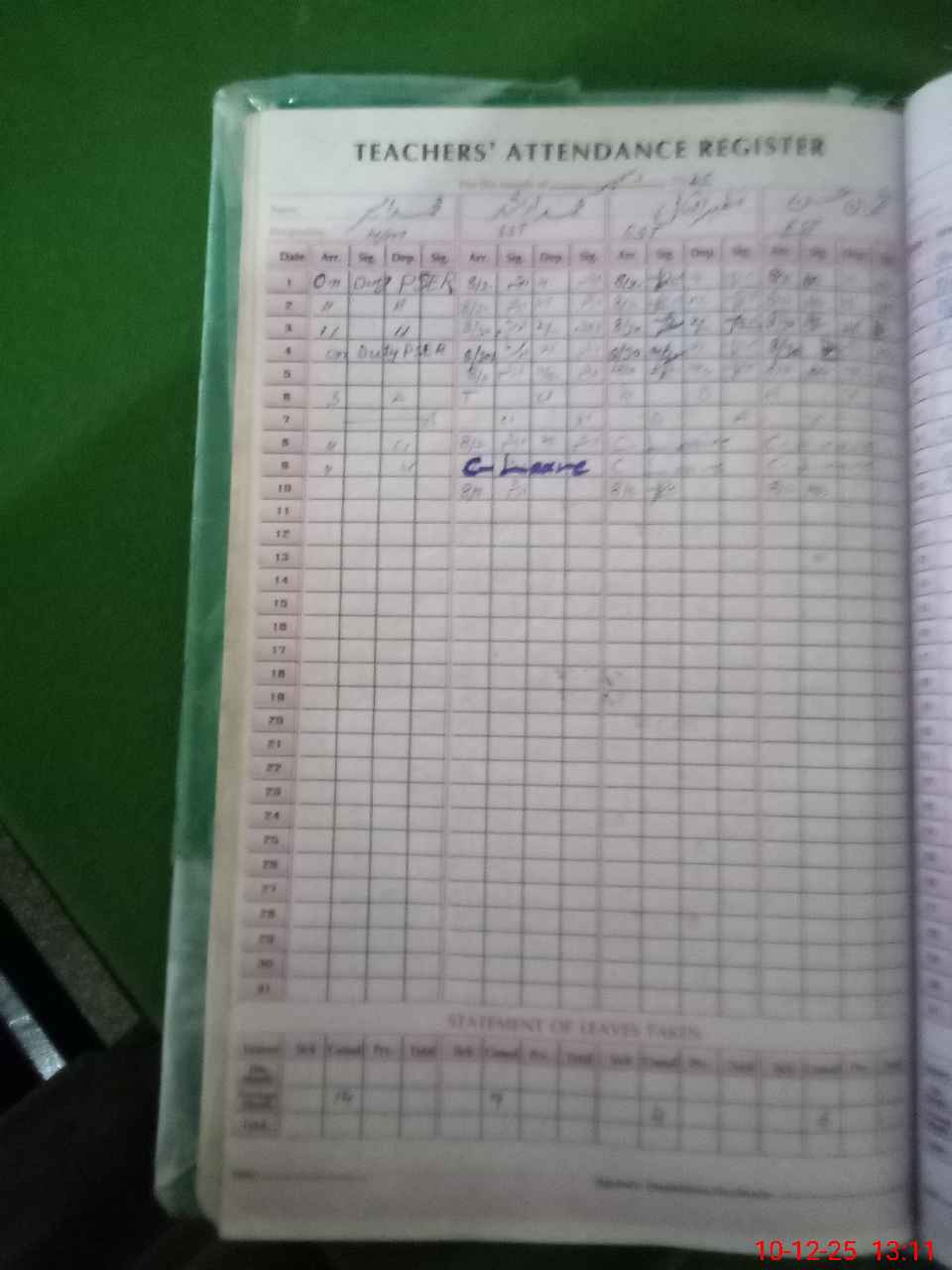 | Leave | Duty | Absent | Maternity | Medical | Ex- Pak |