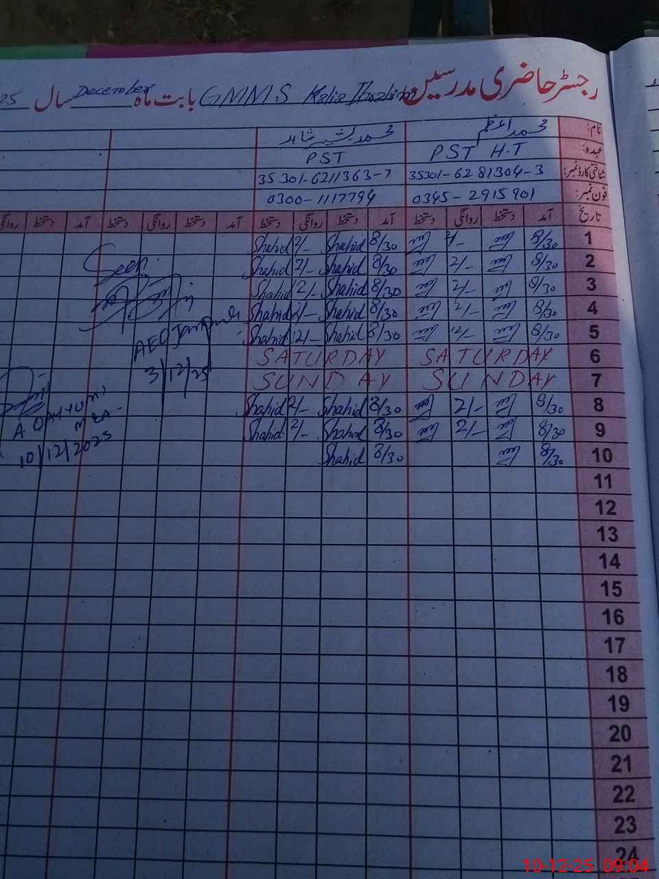 | Name: Mu**** Az**** Designation: (School Headmaster's/Headmistress's) PTC/JV Phone/Cell Number: 03**** |